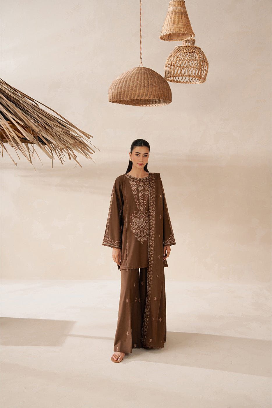 This premium 3PC embroidered Dhanak suit brings elegance & warmth for the winter season. Designed with high-quality fabric & intricate embroidery.