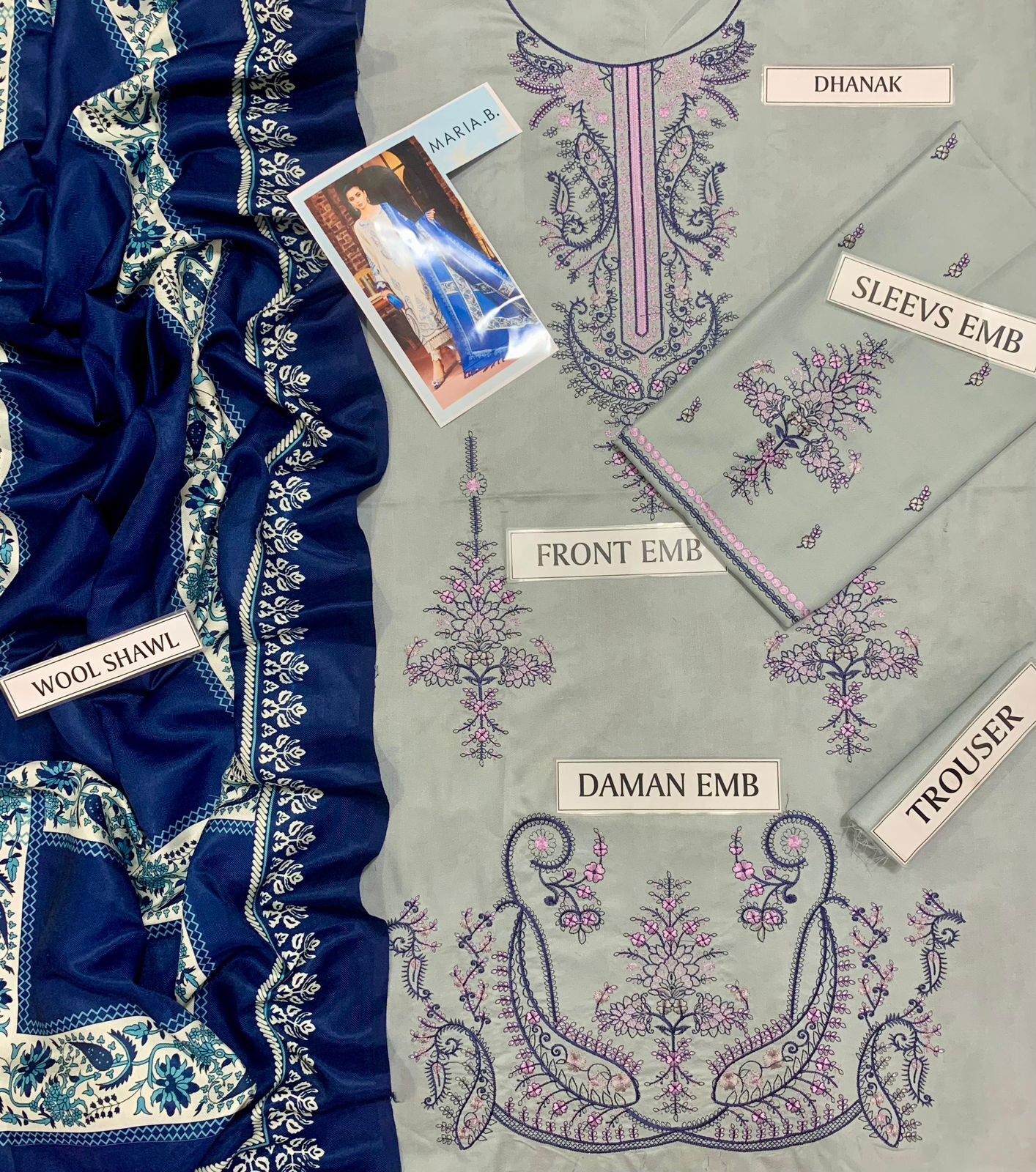 This unstitched 3PC embroidered suit offers sophistication, luxury, and comfort at its best — a perfect addition to your winter wardrobe.